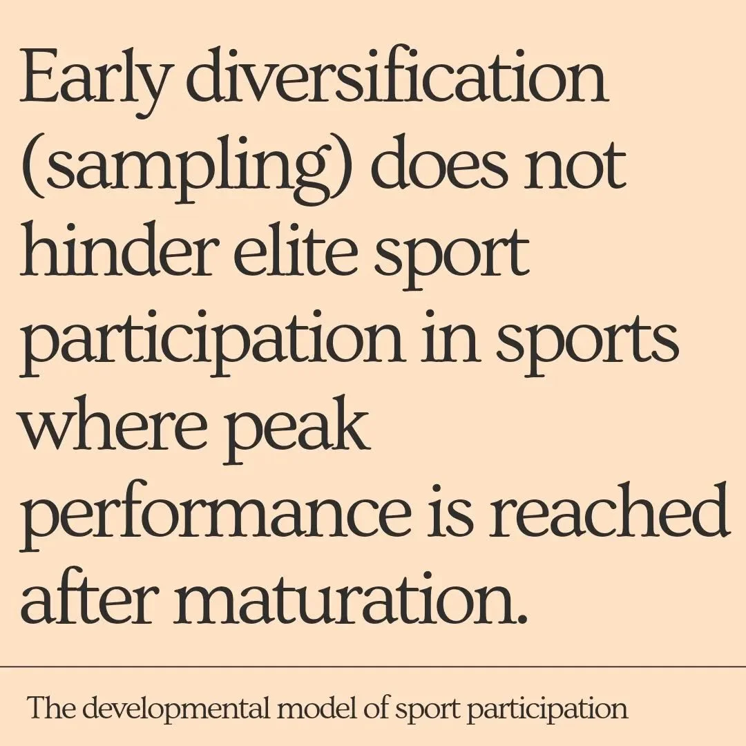 I'm currently reading about athletic development and different models within it. One, the Developmental Model of Sport Participation, has seven 'postulates' associated with it. In 2014, five of the statements (of the model's seven) were considered to have 'strong' evidence to be able to recommend them as best practice to help guide policy. Separately, the last two quotes are from Wayne Goldsmith. His first quote is an excerpt from a video you'll easily find online – no such thing as an elite 8-year-old.