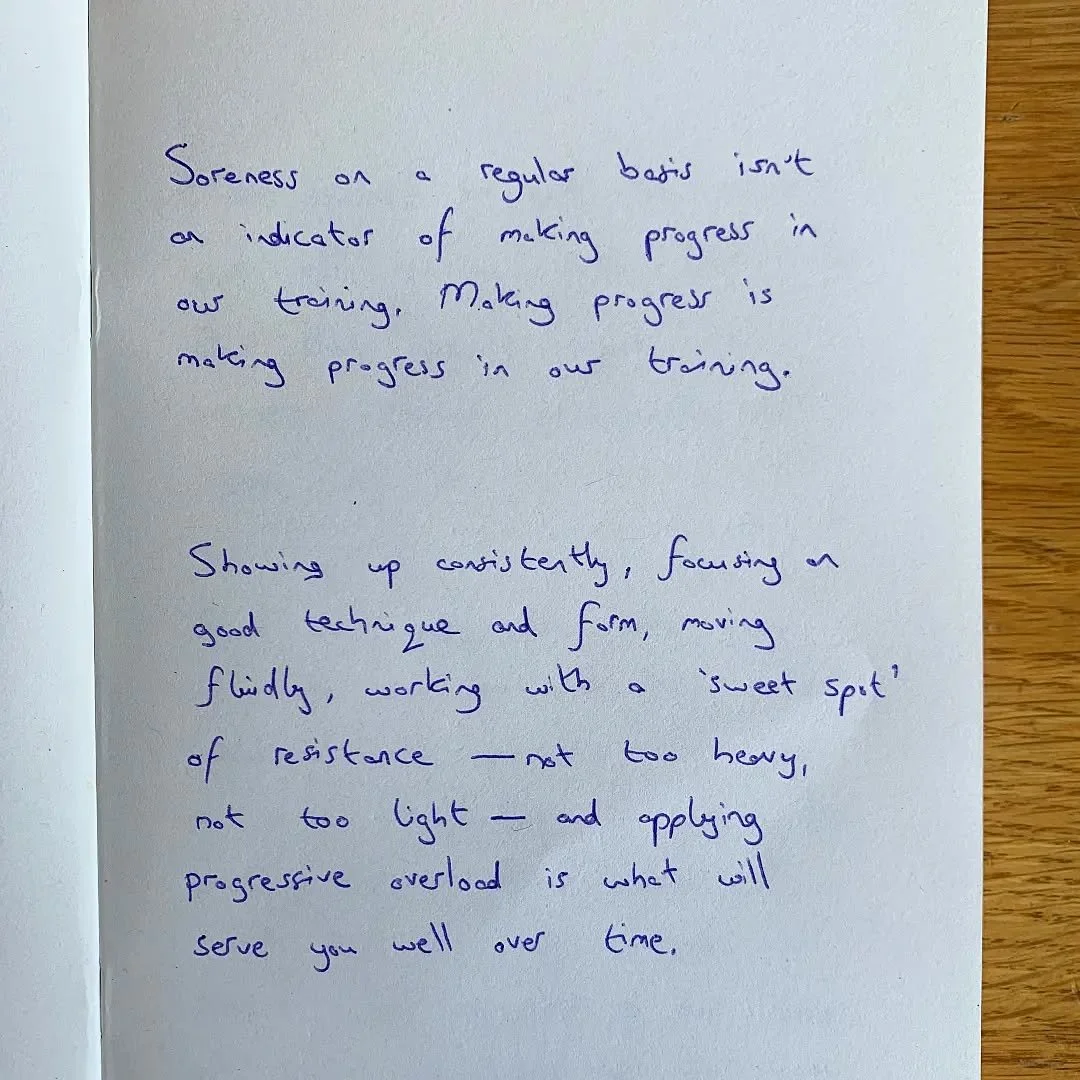 Soreness on a regular basis isn't an indicator of making progress in our training. Making progress is making progress in our training.